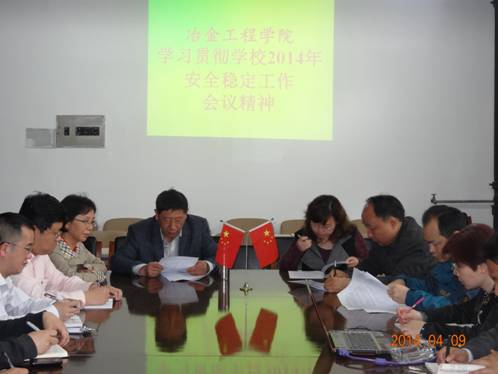学院还将进一步向全体教职工和学生传达学校2014年安全稳定工作会议精神,结合学院实际,对教职工和学生提出明确的任务、责任和要求。