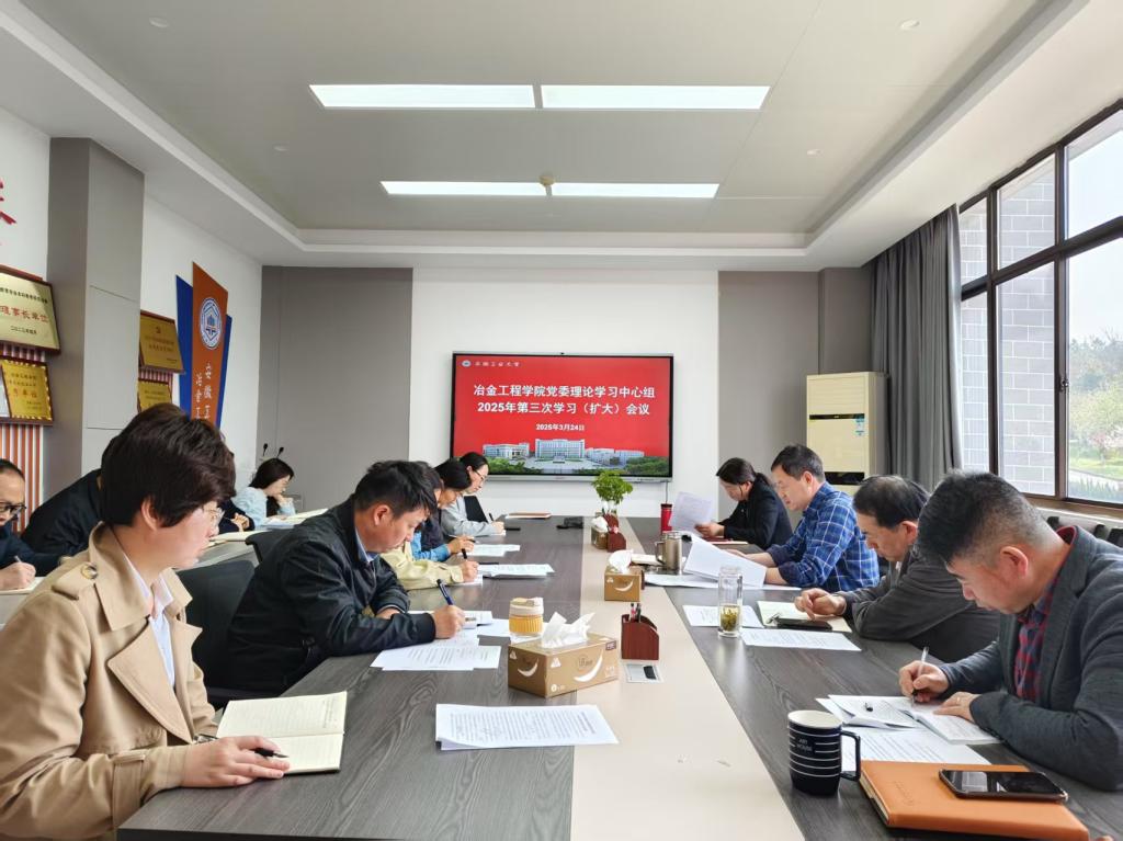 3月24日上午,污污漫画 党委理论学习中心组于秀山校区冶金楼南324会议室召开专题学习(扩大)会议。院党委中心组成员、科级干部参加了此次会议。会议由院党委书记路壮志主持。