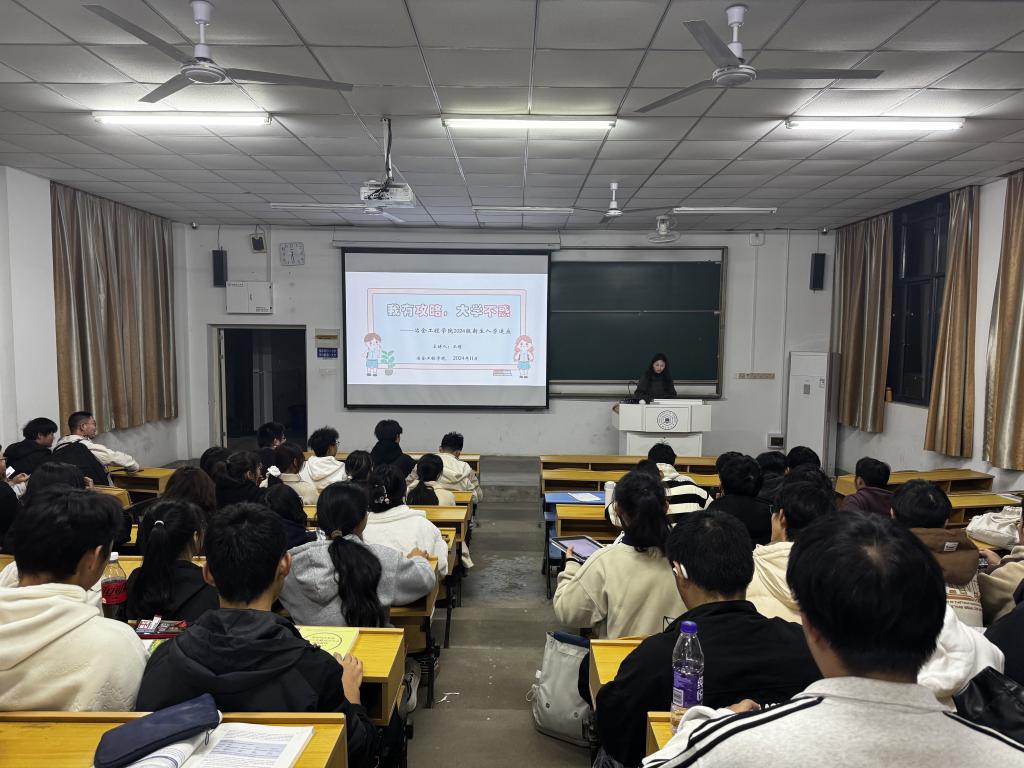 于佳山校区第一教学楼101教室举办2024级新生入学适应教育讲座,院心理工作站站长王倩主讲,2024级全体新生参加了此次活动。