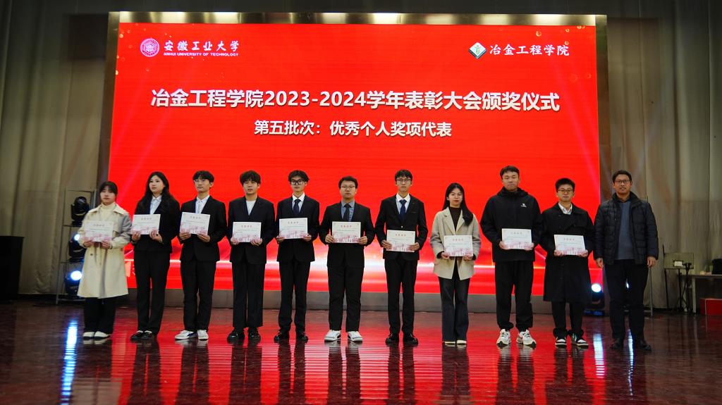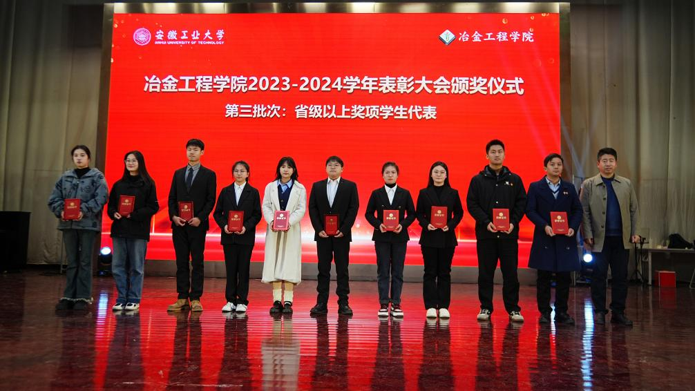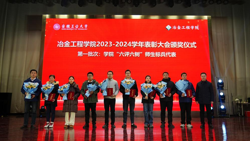 表彰大会在庄严的国歌声中拉开序幕。岳强宣读了学院表彰通报,优秀班主任代表高翔鹏老师、先进集体代表冶215黄嘉奇同学、先进个人代表型215张凤举同学依次代表受表彰集体和个人发言。大会分批次为教书育人标兵、科技创新标兵、管理服务标兵、立德树人标兵、优秀班主任、张大明奖教金、元琛奖教金、优秀班级、文明宿舍、科技竞赛获奖团队、优秀学生干部、三好学生、优秀学生奖学金等集体和个人颁发了荣誉证书,学生代表为获奖老师献上了鲜花。
