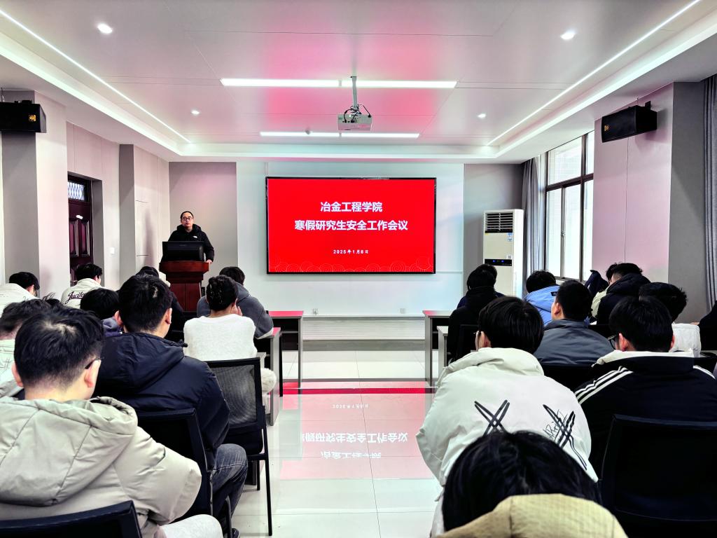 于秀山校区冶金楼南302会议室召开寒假前后研究生安全教育会。辅导员吴巍、从俊强和2024级全体研究生以及高年级学生代表参加了此次会议。