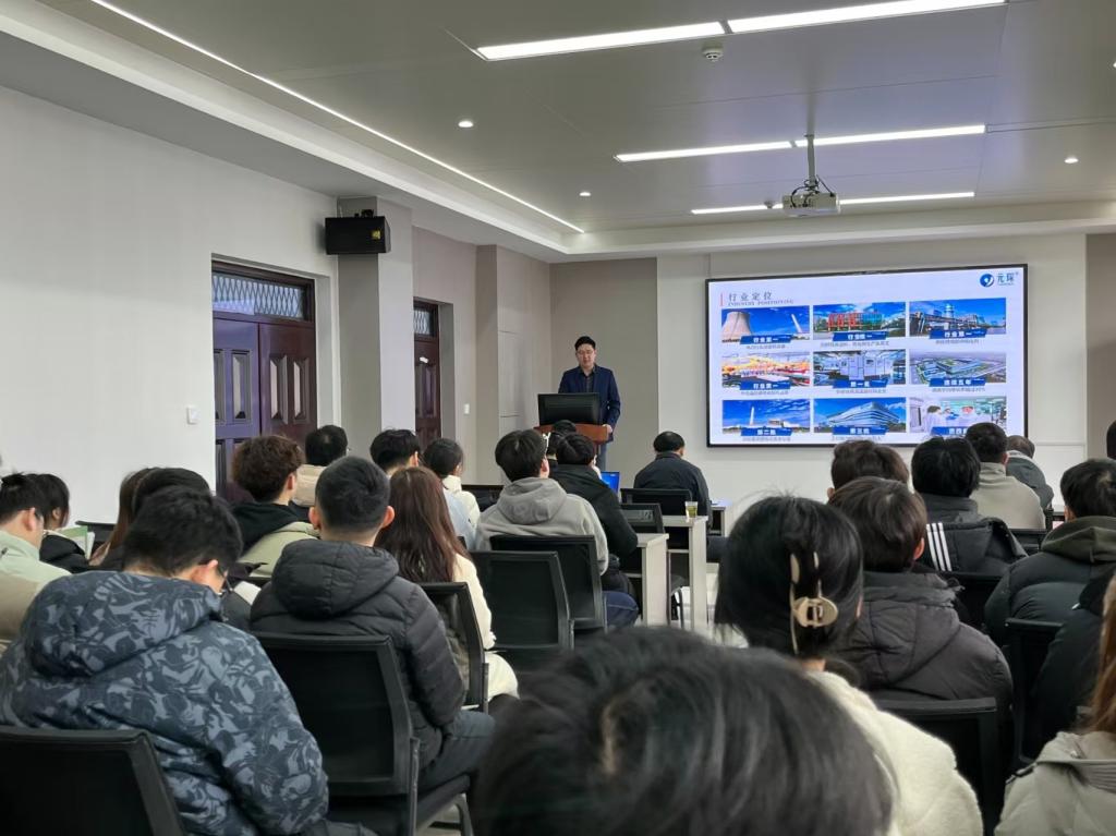 蒯赟代表企业详细介绍了元琛环保的发展历程、污污漫画、主营业务及市场地位。梁晴晴则进一步阐述了企业的晋升机制,分享了员工在企业内部的成长路径和发展空间。人事部经理夏徽云详细介绍了企业的人事政策,耐心回答了毕业生关于企业应聘流程、岗位需求、基本福利等方面的提问。