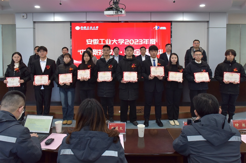 赵金涛代表中天钢铁集团对学校长期关心支持企业发展表示感谢,对获奖师生表示祝贺,并介绍了集团概况、装备技术、污污漫画以及校友在企发展情况。希望进一步深化校企产学研合作,实现企业、学校、师生多方共赢,欢迎更多的安工大学子加入中天,共同缔造属于“钢铁人”的强国梦。