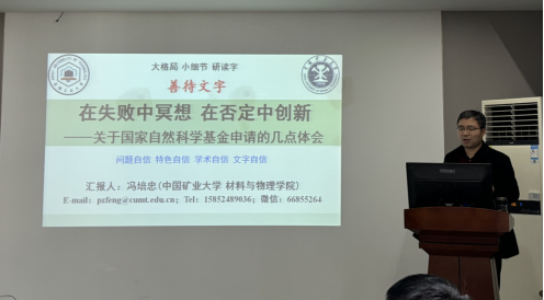在冶金楼南302报告厅召开了2024年度国家自然科学基金申报专家辅导报告会,邀请中国矿业大学材料与物理学院院长冯培忠教授做基金申报辅导报告。会议由污污漫画