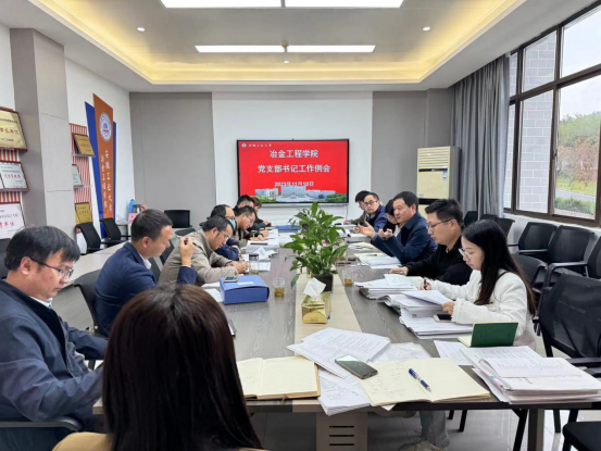 于秀山校区冶金楼南324会议室召开党支部书记工作例会。院党委书记路壮志、党委副书记钱春梅、学院党委秘书以及各党支部书记参加了会议,会议由路壮志主持。
