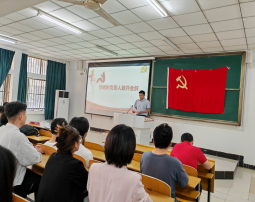 在秀山校区教南103室举行预备党员入党宣誓仪式暨主题教育党日活动。学院党委副书记、副院长杨建出席仪式并讲话,各党支部书记、全体新党员和入党积极分子代表参加宣誓仪式及党日活动。