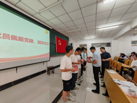 “我志愿加入中国共产党,拥护党的纲领,遵守党的章程……为共产主义奋斗终身,随时准备为党和人民牺牲一切,永不叛党!”伴随《国际歌》响起,新党员面向鲜红的党旗,举起右拳许下铮铮誓言。入党宣誓之后由各支部书记为新党员佩戴党员徽章并颁发党章。