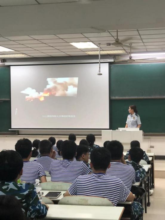 李警官以真实且触目惊心的火灾案例为切入点,强调消防知识基础教育的重要性,引出“防”胜于“消”的重要观点,提出学习消防知识的目的在于培养突遇火灾时的灵活应变能力,同时穿插讲解各种火灾特点,传授火场逃生的基本方法。李警官以当楼下发生火灾时,我们应该往上跑还是往下跑发问,将同学们带入火灾的场景中,将逃生方法传递到每位同学的心中。李警官还将校园里可能存在的火灾隐患一一点出,警醒同学们注意消防安全。同学们在心目中提高了