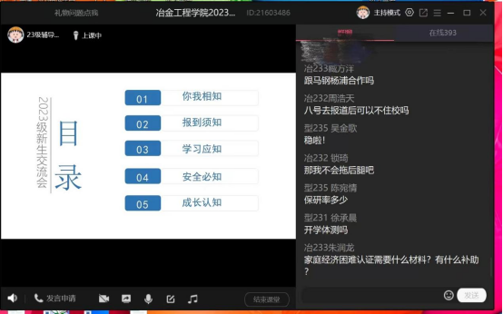 新生线上交流会的召开,让2023级新生对学院有了更加深刻的了解,为迎新工作的顺利开展,帮助新生更好地融入大学生活奠定了坚实的基础。