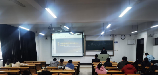 在招聘会正式开始前,杨建与该企业校友任涛亲切交谈,面对面推介毕业班同学。在宣讲时,任涛热情地介绍了自己校友的身份,并就员工培训、薪资待遇、岗位职责等同学们关心的问题进行了解答。宣讲会结束后,同学们现场将简历投递给企业,该企业直接在教室进行了一对一面试。面试结束后,部分学生现场就拿到了offer。