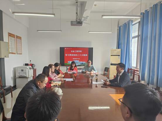 于秀山校区冶金楼南324会议室召开辅导员例会,专题学习宣传贯彻党的二十大精神。院党委副书记、副院长杨建及各年级辅导员参加了此次会议,会议由吴巍主持。