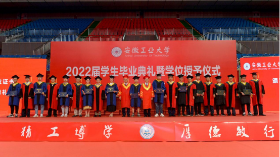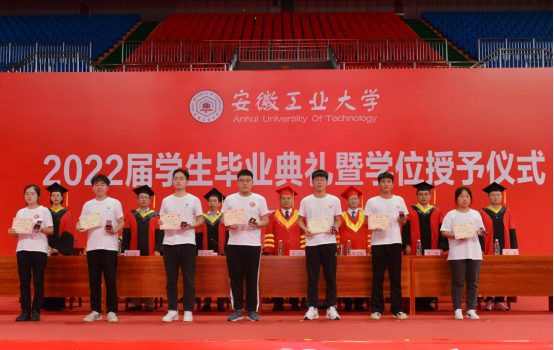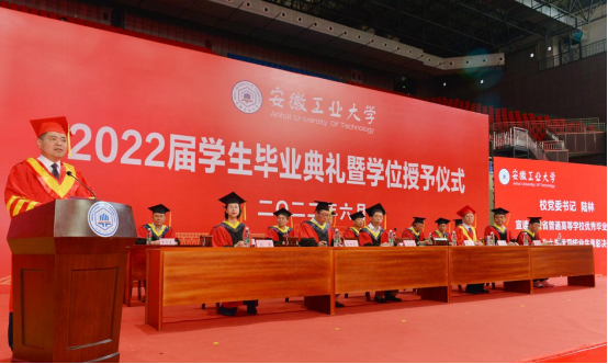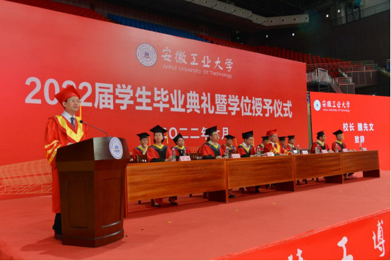 大会在全场师生齐声高唱国歌中拉开帷幕。校党委书记陆林宣读了《2022年安徽省普通高等学校优秀毕业生表彰决定》《2022年安徽工业大学优秀毕业生表彰决定》,来自冶金、材料、化工三个学院的46名同学荣获2022年安徽省普通高等学校优秀毕业生、73名同学被评为2022年安徽工业大学优秀毕业生。