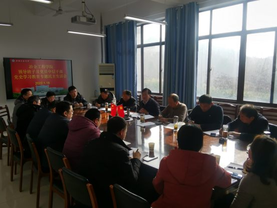 党委于秀山校区冶金楼南324会议室组织召开领导班子及党员中层干部党史学习教育专题民主生活会。校长魏先文到会指导,学院党委委员、纪委委员、支部书记、部分党代表参加了此次会议。会议由院党委书记韦良德主持。
