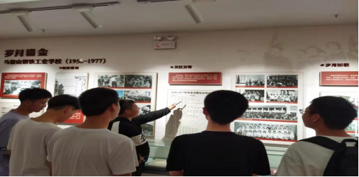 在参观过程中,同学们不时交流讨论,感慨学校发展的艰难时光和辉煌岁月。从因矿建厂到以钢立市,从以钢为纲到工业强市,学校的发展始终是应时而生,顺势而为,在建校60余年的光辉岁月中,为各行各业经济发展,输送了一批又一批的优秀人才。