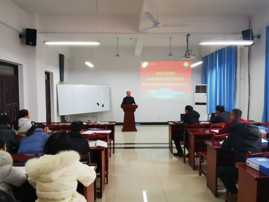 于秀山校区冶金楼南302会议室召开2020年度党支部书记抓党建工作述职评议会。学院党政领导、党委委员、各支部书记、系主任、科级干部、党代表教代表、部分民主党派代表和学生代表参加了此次会议,会议由院党委书记韦良德主持。