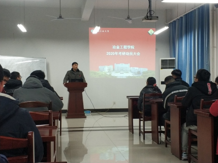2021届毕业班考研备战进入最后冲刺阶段, 12月14日下午,冶金工程学院在秀山校区冶金楼南302会议室举行了2021届考研动员誓师大会。2017级辅导员,各班级党员及考研学生代表参会,学院党委副书记杨建出席大会,并进行动员讲话。