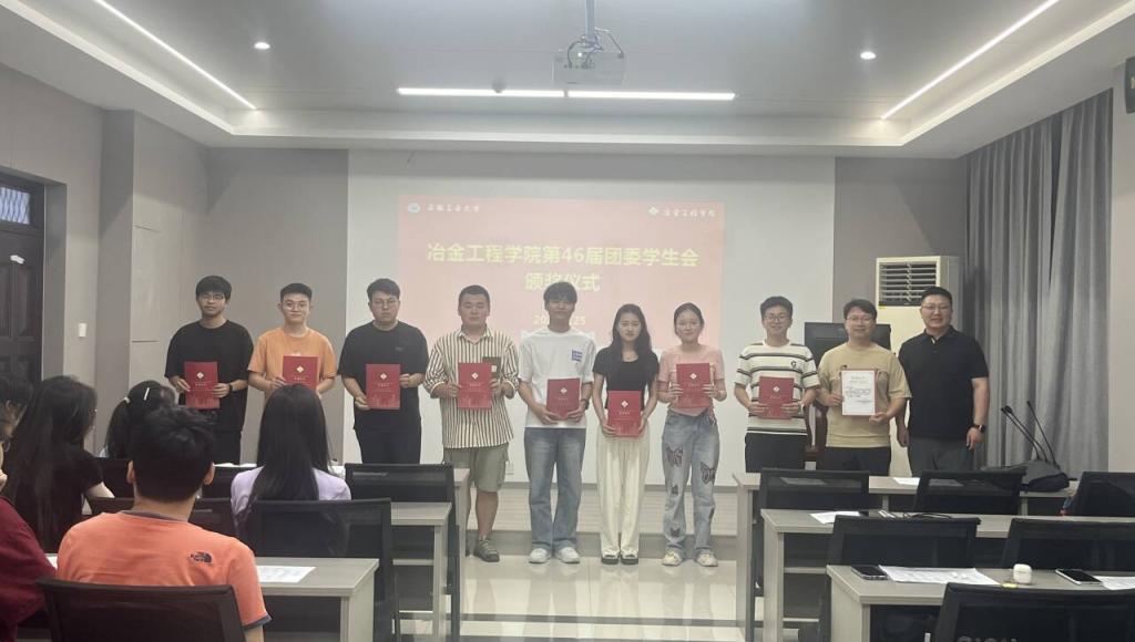 在冶金楼南302会议室举行学院团委学生会表彰大会暨换届仪式,学院团委学生会全体成员参加了此次活动。