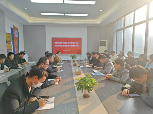 于秀山校区冶金楼南324会议室召开统战工作领导小组会、党外教师座谈会暨青年教师座谈会。学院统战工作领导小组成员、各党支部书记、党外教师代表、青年教师代表参加了此次会议,会议由院党委书记路壮志主持。