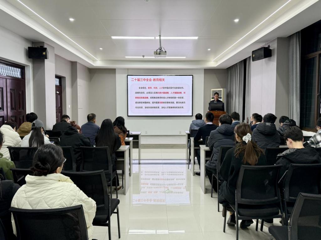 赵卓首先对党的二十届三中全会内容进行了全面解读,并结合学院专业特点、师资队伍、科研概况等方面讲解了如何贯彻落实党的二十届三中全会精神。赵卓强调,全体党员同志要深刻领悟全会精神的实质和内涵,要结合自身角色找准切入点和着力点,自觉把思想和行动统一起来,不断提高自身政治素养、专业技能,努力为建设社会主义现代化强国贡献力量。