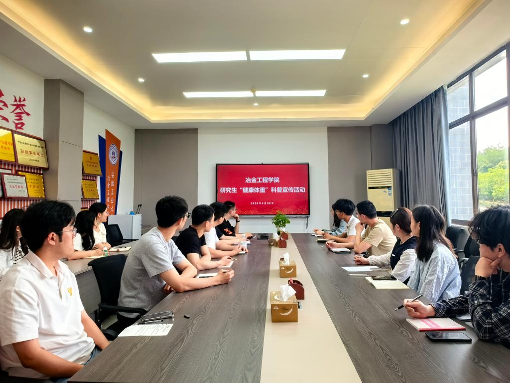 于秀山校区冶金楼南324会议室开展研究生“健康体重”科普宣传活动。学院研究生辅导员吴巍担任主讲,各年级研究生干部参与了此次活动。