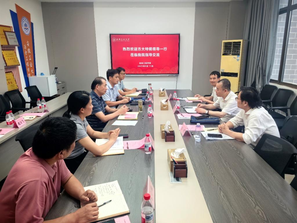 随后,邓斌介绍了方大特钢的发展现状、技术创新需求及人才引进政策。他指出,方大特钢高度重视科技创新和人才队伍建设,期待与安徽工业大学在关键技术研发、高层次人才培养等方面建立长期稳定的合作关系。