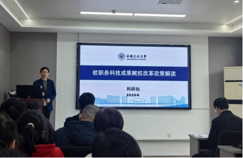 举办了校职务科技成果赋权改革政策解读会。校科研院院长吴宣够应邀作专题宣讲报告,学院党委书记路壮志主持会议,全体教师参加会议。