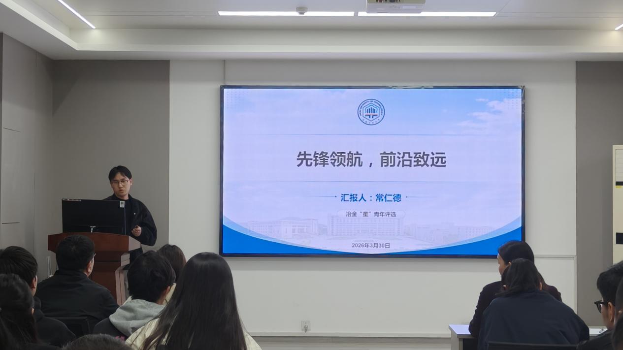 3月30日下午,学院举行2026年“冶金‘星’青年”评选活动。学院党委副书记、副院长朱艳飞,团委书记张夏,团委副书记孙晨,辅导员李露露、刘茗竹及学院师生代表参加活动。