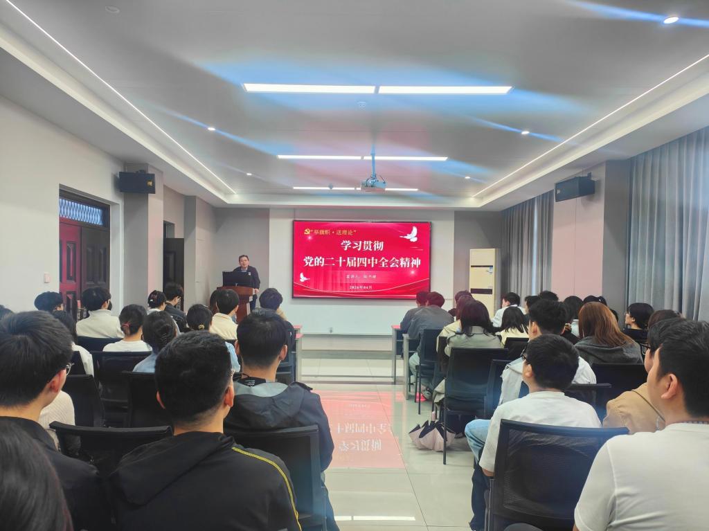 陆书建紧扣党的二十届四中全会公报核心要义,结合国家发展战略、中国式现代化建设蓝图与青年成长实际,进行了系统深入、通俗易懂的解读。他围绕全会的时代背景与重大意义,详细阐释了全会审议通过的“十五五”规划建议的核心内涵,从高质量发展、科技自立自强、现代化产业体系建设、民生保障、国家安全等重点部署出发,系统梳理了我国未来五年的发展目标与战略任务,帮助在场学生党员进一步明晰新时代的前进方向与实践要求。他勉励全体学生党员,要将全会精神的学习与党性修养、专业学习、科研实践紧密结合,坚定理想信念,锤炼过硬本领,牢记党员身份,发挥党员作用,把爱国情、强国志、报国行融入日常学习与未来职业发展,以青春力量服务国家发展。
