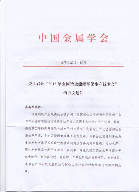 上一篇:关于召开“2013年全国烧结烟气综合治理技术研讨会”的通知