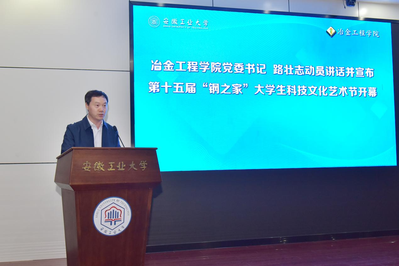 4月23日下午,学院在秀山校区图书馆第一报告厅举办“绿色发展·共创未来”第十五届“钢之家”大学生科技文化艺术节启动仪式,学院领导班子成员、师生代表参加了启动仪式。上海钢之家信息科技有限公司副总裁吴运豪,安徽工业大学2009届校友、安徽钢之家电子商务有限公司副总经理兼特钢部经理杜郑应邀出席了启动仪式,活动由学院党委副书记、副院长钱春梅主持。
