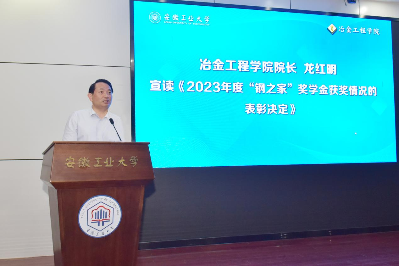 院长龙红明宣读了《关于2023年度“钢之家”奖学金获奖情况的表彰决定》,吴运豪先生为获奖学生颁奖,资202班李义新同学作为获奖学生代表进行了发言,学院党委副书记、副院长钱春梅解读了《污污漫画